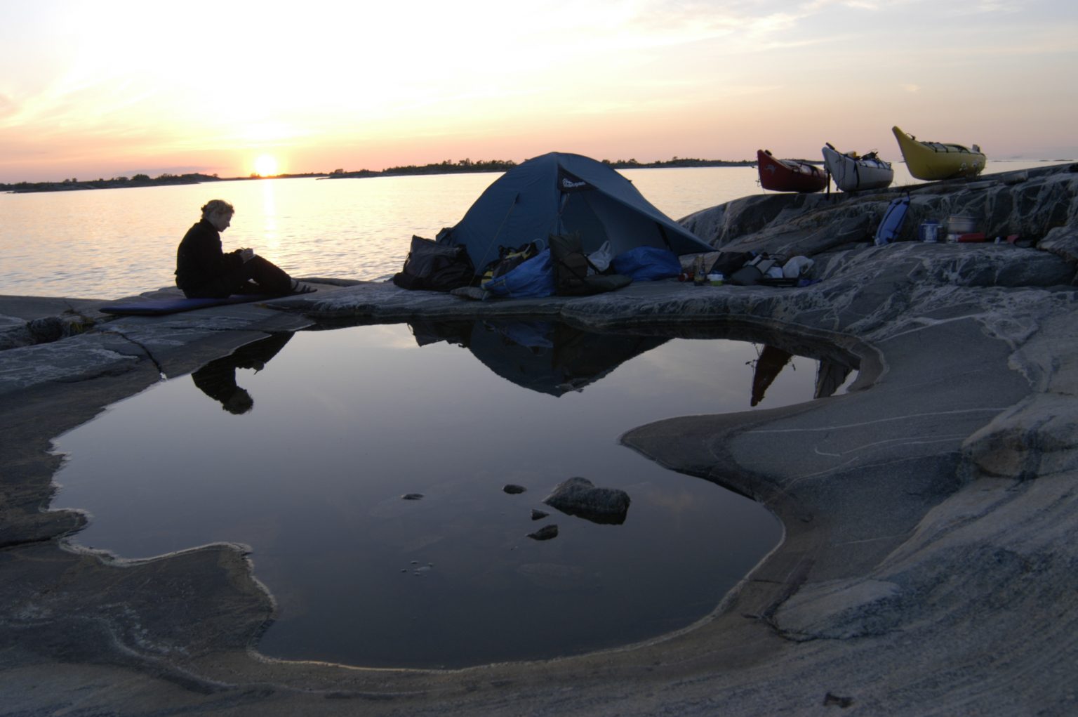 We start our adventure at Gräddö Brygga, an idyllic little village on the edge of the Baltic Sea. Here the kayaks are waiting for you and after a safety briefing and packing of the kayaks we launch for a wonderful day on the water in one of Sweden’s most popular kayaking areas. We paddle at a leisurely pace and enjoy the surroundings and make a beach break when it suits, maybe even a swim. The day ends on our own island and there it is time to bring out the adventurer in you and set up the tent that will be the place to sleep for the night. In the evening, a three-course dinner is prepared outdoors, the menu is based on local ingredients. As the evening draws to a close, it is a good time to admire the sunset and the starry sky from the tent.