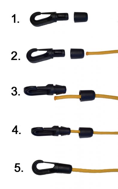 Nylonkrok. Perfekt för att förankra pump, kartfodral, vattenflaska, flottör mm. Lilla kroken passar linor 3-5mm och stora kroken passar linor 6-8mm alternativt dubbel 3-5mm.
